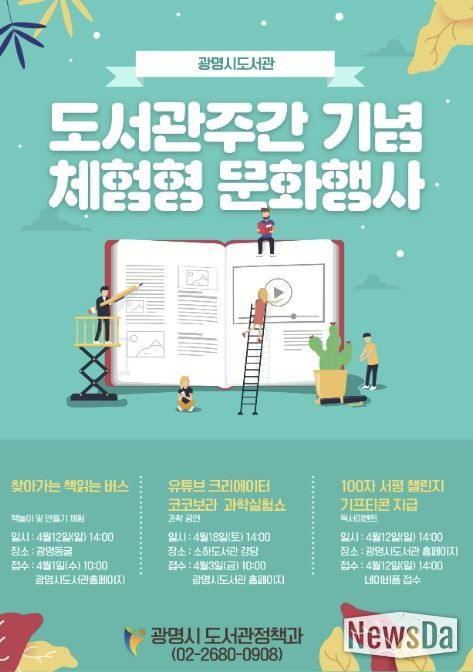 뉴스다 최광묵 기자 | 광명시가 제2회 도서관의 날(4월 12일)과 제62회 도서관주간(4월 12일~18일)을 맞아 시민들이 직접 체험하고 즐길 수 있는 다채로운 독서문화 행사와 공연을 개최한다.