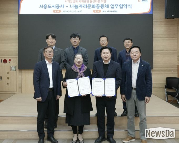 뉴스다 최광묵 기자 | 시흥도시공사는 지난 25일, 나눔자리문화공동체와 지역상생과 사회공헌 활성화를 위한 업무협약을 체결했다고 밝혔다.