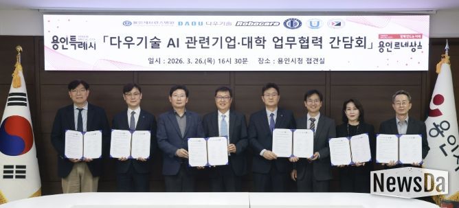 뉴스다 최광묵 기자 | 용인특례시는 26일 ㈜다우기술, 지역내 대학, 병원, 인공지능산업 관련 기업 관계자들과 ‘지역 AI 및 벤처기업 육성을 위한 사무공간 무상제공 수요처 간담회’를 개최했다.