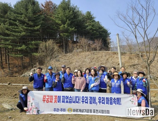 뉴스다 최광묵 기자 | 포천시 바르게살기운동 창수면위원회는 지난 26일 창수면 운산리 일원에서 나라사랑의 의미를 되새기는 ‘무궁화 심기’ 행사를 개최했다.