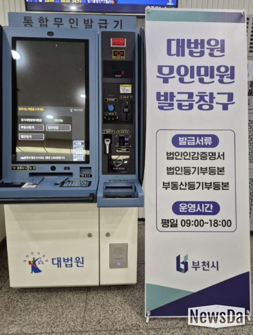 뉴스다 최광묵 기자 | 부천시는 3월 27일부터 시청 민원실에 대법원 통합무인발급기를 설치하고 운영을 시작한다.