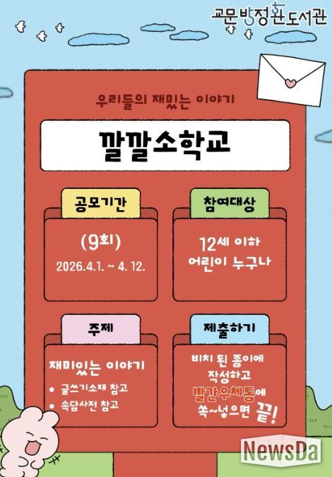 참여 어린이들은 도서관 내 ‘깔깔코너’에서 글쓰기 주제를 선택한 뒤, 비치된 사전 등을 활용해 이야기를 작성하고 이를 우체통에 넣어 제출하면 된다. 제출된 글은 만화 콘텐츠로 제작되어 어린이들에게 창작의 즐거움과 성취감을 제공할 예정이다.