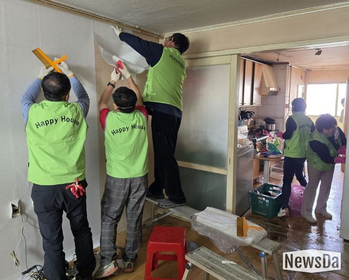 이번 봉사는 노후화된 주거환경으로 생활에 어려움을 겪고 있는 취약계층 가구를 대상으로 진행됐으며, 집수리봉사단은 도배와 장판 교체 작업을 통해 쾌적하고 안전한 생활공간을 마련하는 데 힘을 보탰다.