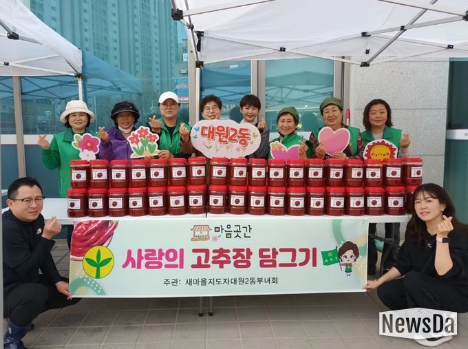 오예순 새마을지도자 대원2동 부녀회장은 “회원들의 정성을 담아 만든 고추장이 많은 분들께 도움이 되기를 바란다”며 “앞으로도 다양한 나눔 활동을 통해 이웃사랑을 지속적으로 실천해 나가겠다”고 말했다.