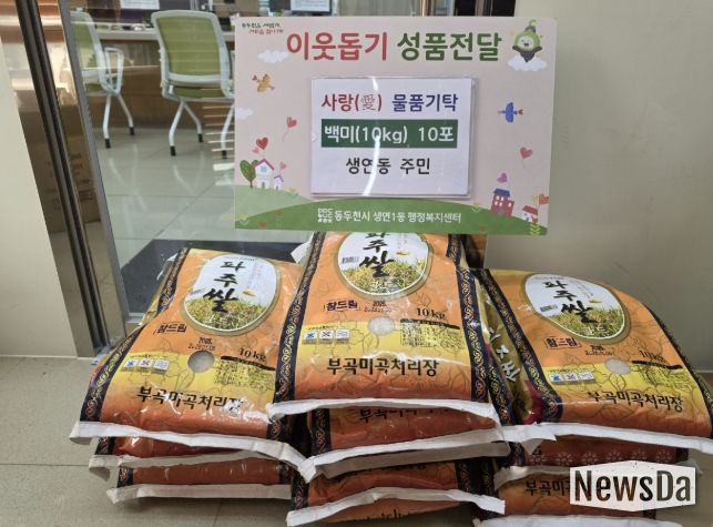 뉴스다 최광묵 기자 | 생연1동 행정복지센터는 지난 26일 관내 주민으로부터 어려운 이웃을 위한 따뜻한 나눔의 쌀(10kg) 10포를 기탁받았다고 밝혔다.