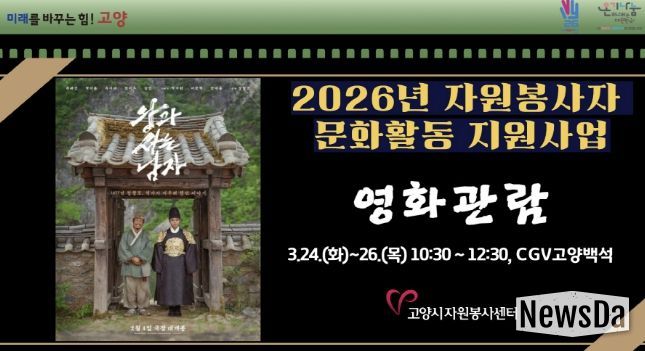 뉴스다 최광묵 기자 | 고양시자원봉사센터는 지난 24일에서 26일까지 3일간 CGV 고양백석점에서 ‘2026년 자원봉사자 문화활동 지원사업’을 성공적으로 개최했다.