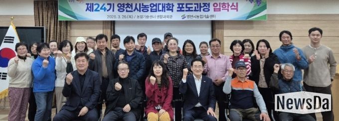 뉴스다 최광묵 기자 | 영천시는 지난 26일 농업기술센터에서 교육생 29명이 참석한 가운데 ‘제24기 농업대학 포도과정’ 입학식을 개최하고, 본격적인 학사 일정에 돌입했다고 밝혔다.