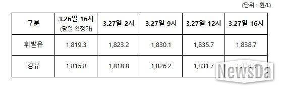 뉴스다 최광묵 기자 | 정부는 3월 27일 00시부터 정유사 출고물량에 대해 2차 석유 최고가격을 시행했다.