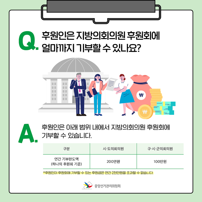 A. 후원인은 아래 범위 내에서 지방의회의원 후원회에 기부할 수 있습니다.