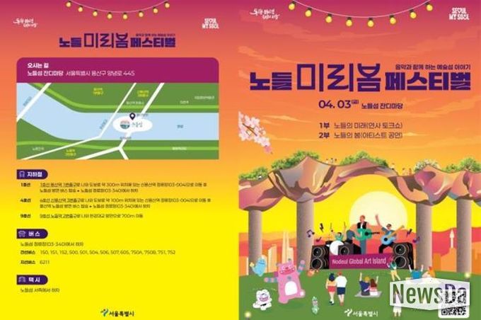 뉴스다 최광묵 기자 | 서울시는 4월 3일 노들섬 잔디마당에서 시민과 함께 노들섬의 미래 모습을 쉽고 즐겁게 만나볼 수 있는 '노들 미리봄 페스티벌'을 개최한다고 밝혔다.