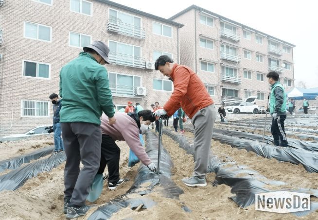 뉴스다 최광묵 기자 | 광주시 탄벌동 새마을회는 지난 28일 회덕동 소재 새마을 텃밭에서 회원 30여 명이 참여한 가운데 ‘사랑의 감자 심기’ 농작업을 했다.