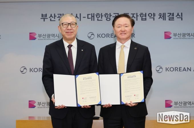 뉴스다 최광묵 기자 | 부산시는 30일 오후 3시 10분 강서구 ㈜대한항공 부산테크센터에서 ㈜대한항공(대표이사 부회장 우기홍)과 2천억 원 규모의 투자양해각서를 체결한다고 밝혔다.
