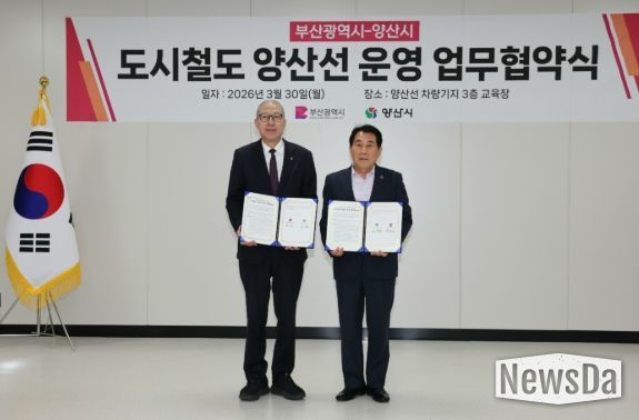 뉴스다 최광묵 기자 | 양산시는 30일 오후 2시 양산선 차량기지 내에서 부산광역시와 ‘양산선 운영 업무협약’을 체결하고 도시철도 운영 협력체계 구축에 나섰다고 밝혔다.