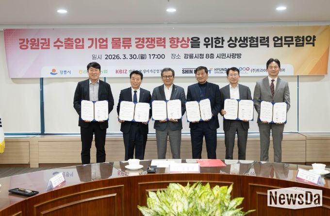 뉴스다 최광묵 기자 | 강릉시는 지난 30일 오후 5시, 시청 8층 시민사랑방에서 강원권 수출입 기업의 물류 경쟁력을 높이고 옥계항을 활성화하기 위한 ‘상생협력 업무협약(MOU)’을 체결했다.