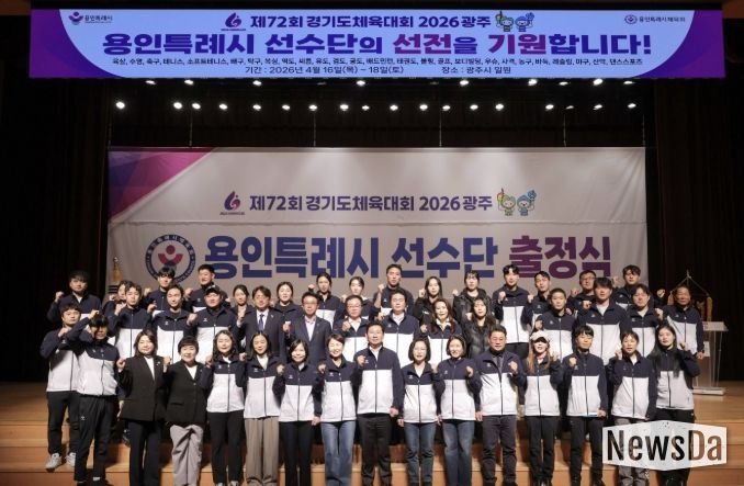 뉴스다 최광묵 기자 | 용인특례시는 30일 시청 에이스홀에서 ‘제72회 경기도체육대회 2026 광주’에 참가하는 선수단 출정식을 개최했다.