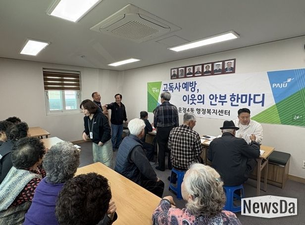 뉴스다 최광묵 기자 | 파주시 운정4동은 지난 26일 상지석2리 경로당에서 고독사 예방을 위한 홍보 활동과 이동상담센터 운영을 함께 추진했다.