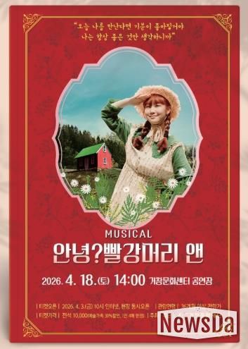 뉴스다 최광묵 기자 | (재)거창문화재단은 오는 4월 18일 14시에 거창문화센터 공연장에서 가족뮤지컬 ‘안녕? 빨간머리 앤’을 개최한다.