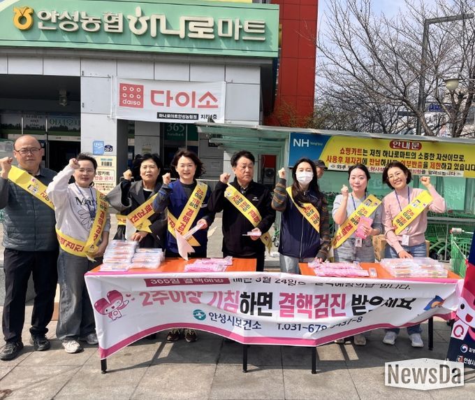 뉴스다 최광묵 기자 | 안성시보건소는 ‘제16회 결핵 예방의 날(3월 24일)’을 맞아 지난 3월 25일 관내 유동 인구가 많은 안성농협 하나로마트 정문 및 안성시장 인근에서 ‘결핵 예방 캠페인’을 실시했다고 밝혔다.