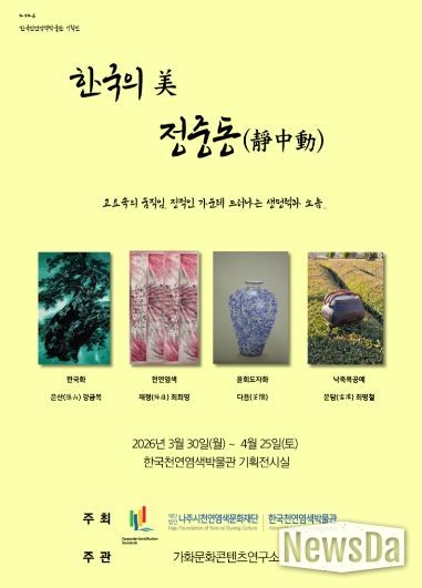 뉴스다 최광묵 기자 | 한국천연염색박물관이 한국 전통예술에 내재한 고요 속 움직임의 미학을 조명하는 기획전을 선보이며 관람객에게 사유와 성찰의 시간을 제공한다.