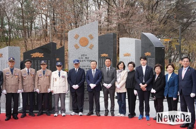 뉴스다 최광묵 기자 | 중랑구가 3월 31일 신내1동 배말공원에서 호국보훈 기념공간 조성에 따른 ‘6‧25‧월남 참전유공자 기념비 제막식’을 개최했다.