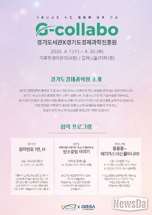 뉴스다 최광묵 기자 | 경기도서관은 수소 에너지를 널리 알리기 위해 4월 한 달간 경기도경제과학진흥원과 협업프로젝트를 운영한다고 1일 밝혔다. 전시와 강좌, 체험을 연계한 프로그램을 통해 수소산업과 탄소중립에 대한 인식을 확산하는 것이 목적이다.