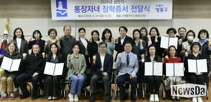 뉴스다 최광묵 기자 | 수원시 영통구는 지난 3월 31일 구청 상황실에서 2026년 상반기 통장자녀 장학증서 전달식을 개최했다.