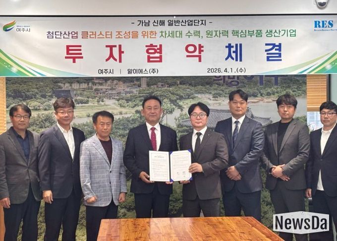 여주시는 지난 4월 1일, 특수 회전기기 생산기업 알이에스㈜와 ‘가남 신해 일반산업단지 첨단산업 클러스터 조성’을 위한 제1호 투자협약(MOU)을 체결했다고 밝혔다.