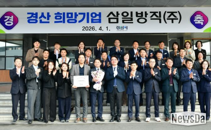 뉴스다 최광묵 기자 | 경산시는 2026년 2분기 경산 희망기업으로 삼일방직(주)을 선정하고, 1일 시청 대회의실에서 경산 희망기업 선정식을 가져 트로피와 현판을 수여했다.