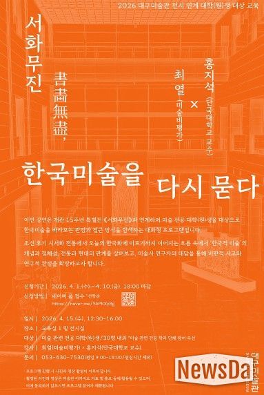 대구미술관 관계자는 “이번 프로그램은 전시를 기반으로 한국미술을 바라보는 다양한 관점과 해석을 공유하는 자리로, 전공자들을 위한 심화 교육을 통해 한국미술을 바라보는 시각을 확장하는 계기가 될 것으로 기대한다”고 말했다.