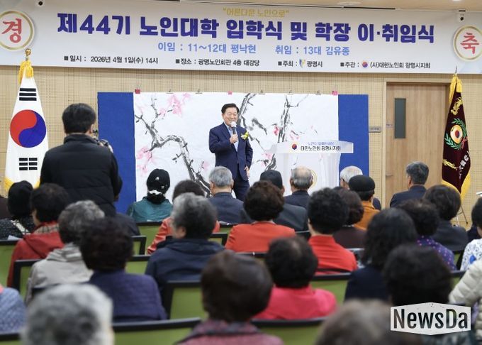 뉴스다 최광묵 기자 | 광명시가 1일 대한노인회 광명시지회(지회장 박종애) 주관으로 광명노인회관에서 제44기 노인대학 입학식을 열고, 222명 어르신의 새로운 배움길을 열었다.