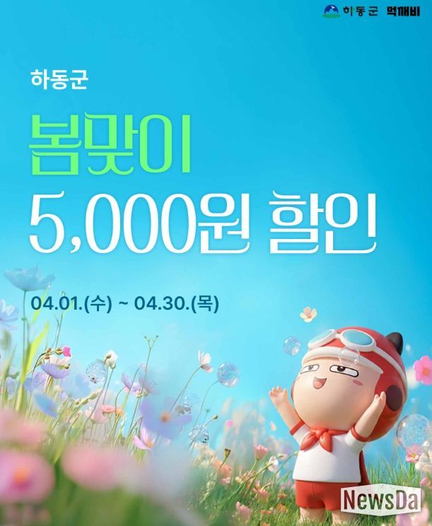 뉴스다 최광묵 기자 | 하동군이 4월 한 달간 공공배달앱 ‘먹깨비’를 통해 봄맞이 할인 이벤트를 추진한다.