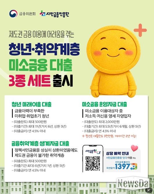 뉴스다 최광묵 기자 | 제도권 금융 이용에 어려움을 겪는 청년·취약계층 미소금융 대출 3종 세트 출시