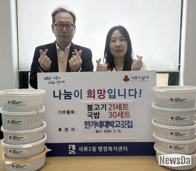 뉴스다 최광묵 기자 | 지난 31일, 수원시 권선구 세류2동에 위치한 한가네 대박고깃집은 국밥 30그릇과 불고기 20세트를 세류2동행정복지센터에 기탁했다.