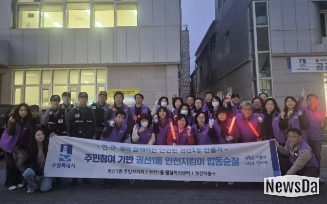 뉴스다 최광묵 기자 | 수원시 권선구 권선1동 주민자치회는 지난 31일 저녁, 지역 주민들과 함께 권선1동 일대에서 민·관·경 합동순찰을 실시했다.