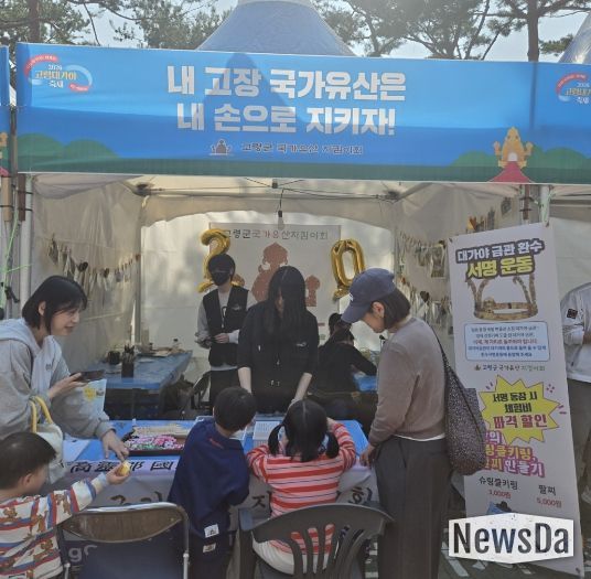 뉴스다 최광묵 기자 | 고령군 국가유산 지킴이회(회장 김민규)가 지난 3월 27일부터 29일까지 3일간 열린 ‘2026 대가야 축제’에서 자원봉사 부스를 운영하며 일제강점기 국외로 반출된 ‘대가야금관’ 환수를 위한 범국민 서명운동을 펼쳐 큰 호응을 얻었다.