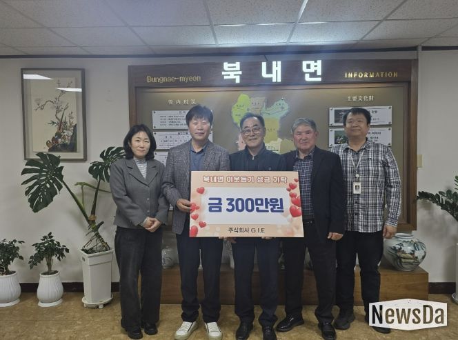 뉴스다 최광묵 기자 | 북내면행정복지센터는 2026년 4월 1일 ㈜G.I.E 홍광표 대표가 지역 내 어려운 이웃을 위해 300만 원을 지정기탁했다고 밝혔다.