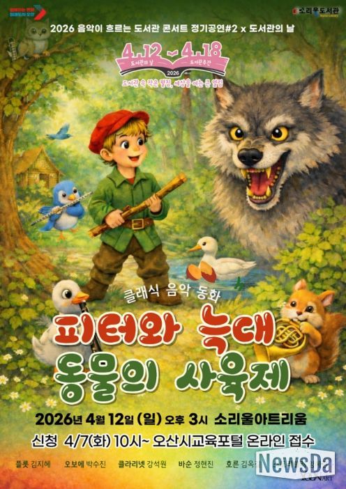 뉴스다 최광묵 기자 | 오산시 소리울도서관은 오는 4월 12일 오후 3시 소리울아트리움에서 ‘2026 도서관의 날’을 기념해 온 가족이 클래식의 매력을 즐길 수 있는 '음악이 흐르는 도서관 콘서트'를 개최한다.