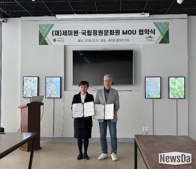뉴스다 최광묵 기자 | 재단법인 세미원과 국립정원문화원은 지난 3월 31일 세미원에서 상호 협력을 위한 업무협약(MOU)을 체결했다.