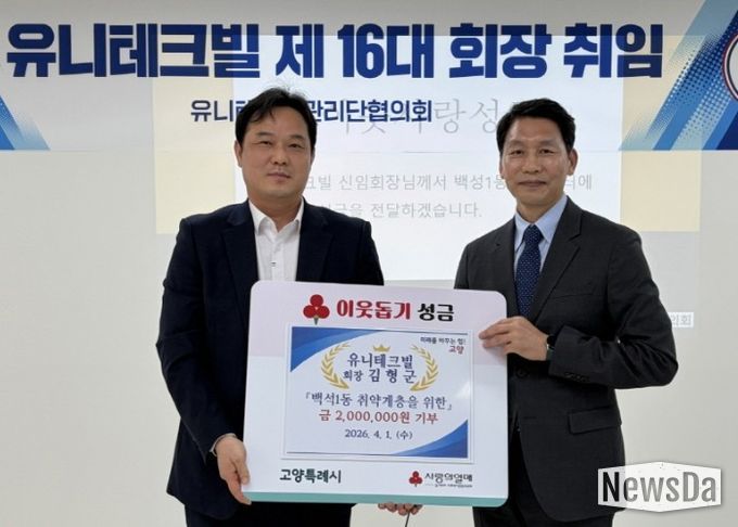 뉴스다 최광묵 기자 | 고양특례시 백석1동 행정복지센터는 지난 1일 유니테크빌 김형군 회장으로부터 취약계층을 위한 성금 200만원을 전달받았다.