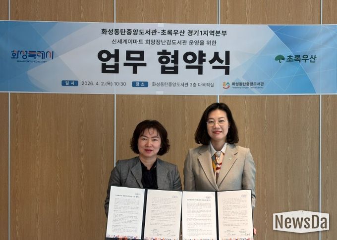 뉴스다 최광묵 기자 | 화성동탄중앙도서관은 2일 초록우산 경기1지역본부와 아동의 건강한 성장 발달을 지원하고 지역 사회의 양육 부담을 경감하기 위해 ‘신세계이마트 희망장난감도서관’ 운영 업무협약을 체결했다.
