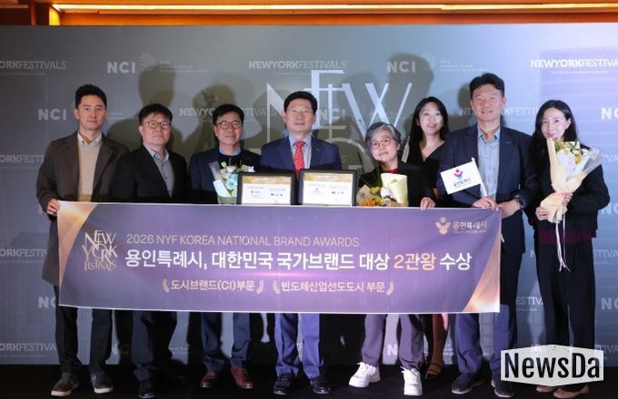 뉴스다 최광묵 기자 | 용인특례시가 칸 국제광고제, 클리오광고제와 함께 세계 3대 광고제로 꼽히는 뉴욕페스티벌(NYF)이 주관하는 ‘2026 뉴욕페스티벌 대한민국-국가브랜드 대상’(NYF K-NBA)에서 도시브랜드(CI) 부문과 반도체산업 선도 도시 부문 1위로 선정됐다.