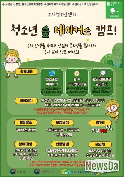 김미희 소사청소년센터장은 “숲 기반 활동을 통해 산림의 가치를 인식하고 생태감수성을 함양하기 바란다. 나아가 일상 속에서 친환경 활동을 자발적으로 주도하는 청소년으로 성장하길 기대한다”고 전했다.
