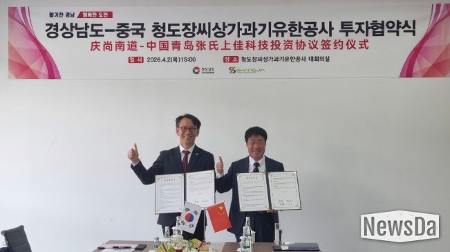 경남도는 2일 중국 산둥성 칭다오시에 위치한 청도장씨상가과기유한공사(이하 장씨상가) 본사에서 경남 도내 자동차 부품 제조시설 투자를 위한 양해각서(MOU)를 체결했다고 밝혔다.