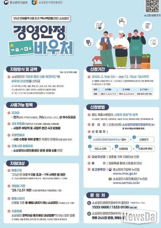 이번 사업은 중소벤처기업부와 소상공인시장진흥공단이 추진하는 정책으로, 공과금과 4대 보험료 등 고정비용에 사용할 수 있는 바우처를 지원해 소상공인의 실질적인 경영 안정을 돕기 위한 것이다.