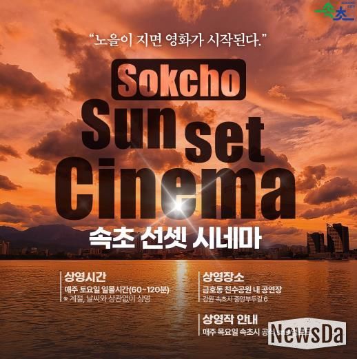 뉴스다 최광묵 기자 | 속초시가 아름다운 자연환경과 석양 풍경을 배경으로 정기적인 영화 상영을 진행하는 '2026 속초 선셋시네마'를 운영한다.