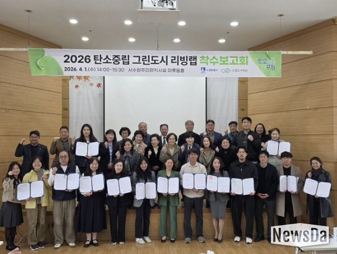 뉴스다 최광묵 기자 | 수원특례시와 수원도시재단이 1일 서수원주민편익시설에서 ‘2026년 탄소중립 그린도시 리빙랩 착수보고회’를 열고, 탄소중립 그린도시 리빙랩 사업의 추진 방향을 알렸다.