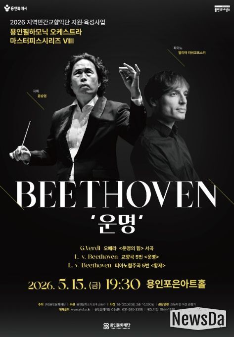 뉴스다 최광묵 기자 | 용인문화재단은 오는 5월 15일 오후 7시 30분 용인포은아트홀에서 ‘2026년 지역민간교향악단 지원·육성사업’의 첫 공연으로 용인필하모닉오케스트라의 기획공연 '마스터피스 시리즈 Ⅷ - 베토벤 ‘운명’'을 선보인다.