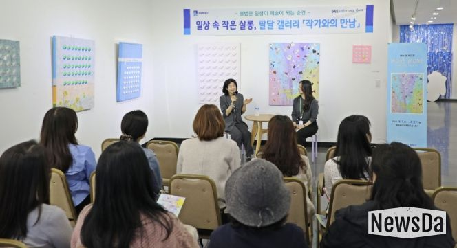 뉴스다 최광묵 기자 | 수원시 팔달구는 지난 4월 2일, 팔달구청 1층 팔달 갤러리에서 4월 전시 작가인 현수영 작가를 초청하여 지역 주민들과 함께 소통하는 ‘작가와의 만남’ 행사를 개최했다고 밝혔다.