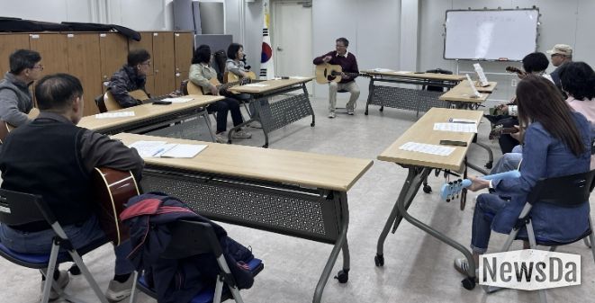 뉴스다 최광묵 기자 | 수원시 팔달구 매교동은 주민들을 위한 통기타 초급 강좌를 새롭게 개설하고 지난 2일 첫 수업을 시작했다.