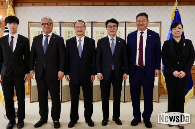 뉴스다 최광묵 기자 | 김민석 국무총리는 4월 2일 오전, 정부서울청사에서 조나단 초이(Jonathan Choi) 홍콩 중화총상회장 등을 접견했다.